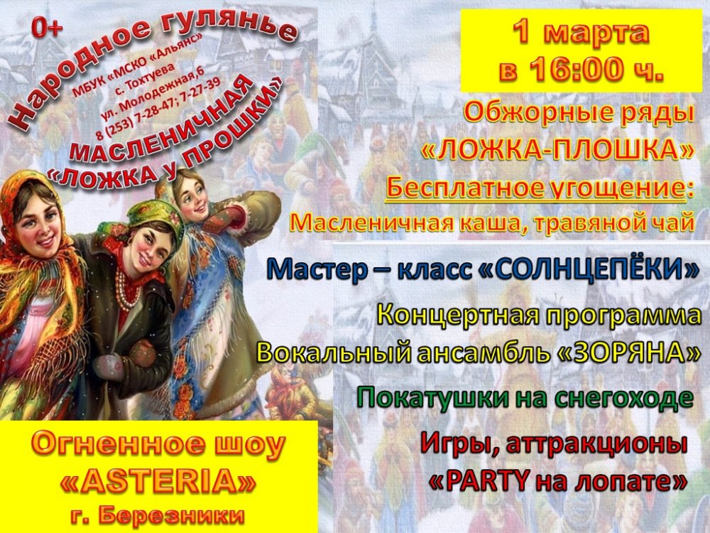 1 марта в ДК Альянс (Тохтуево) пройдет Народное гулянье «Масленичная „ложка у Прошки“.