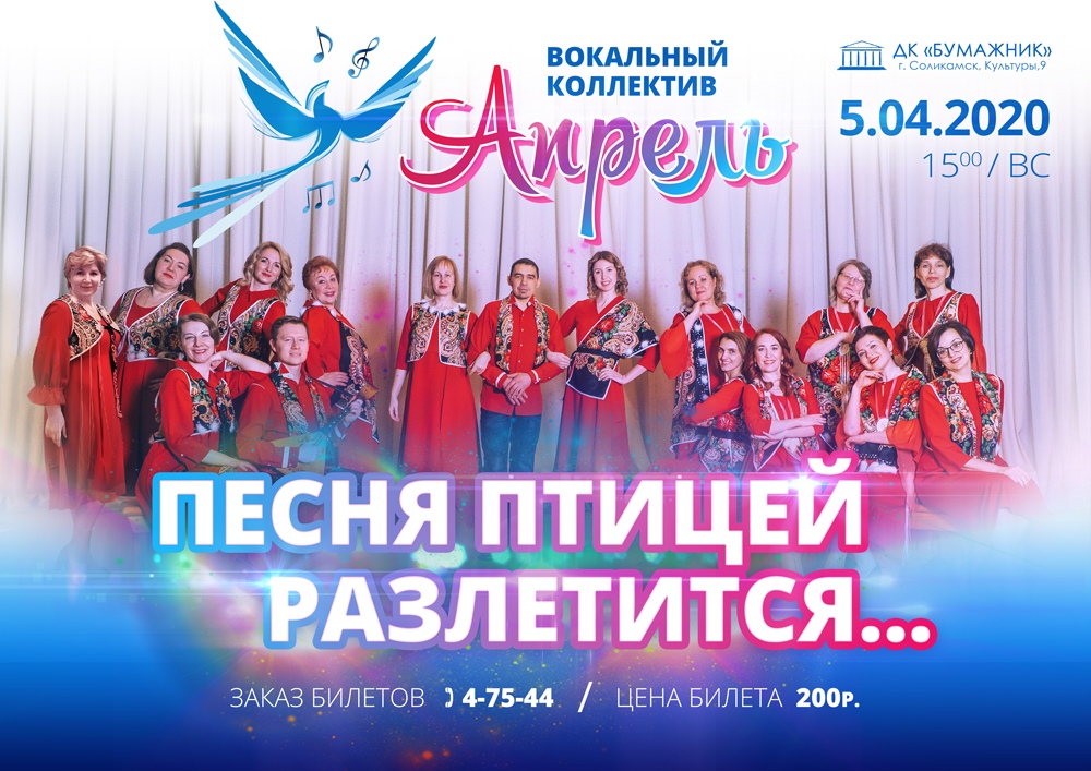 5 апреля 2020 вокальный коллектив работников АО «Соликамскбумпром» приглашает на свой первый концерт!