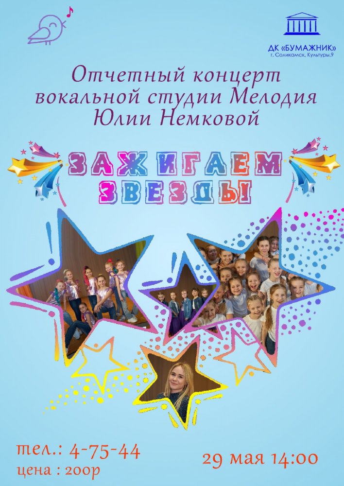 29 мая 2021 на сцене ДК «Бумажник» пройдет отчетный концерт Вокальной студии «Мелодия»!