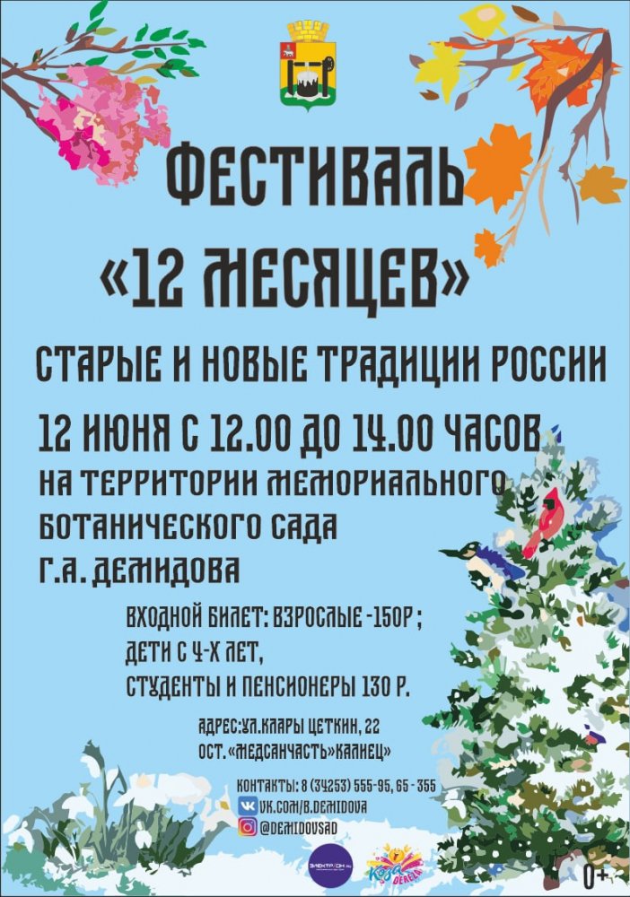 12 июня в Ботаническом саду Демидова пройдет фестиваль «12 месяцев». В программе 12 площадок, 12 тематических мероприятий.