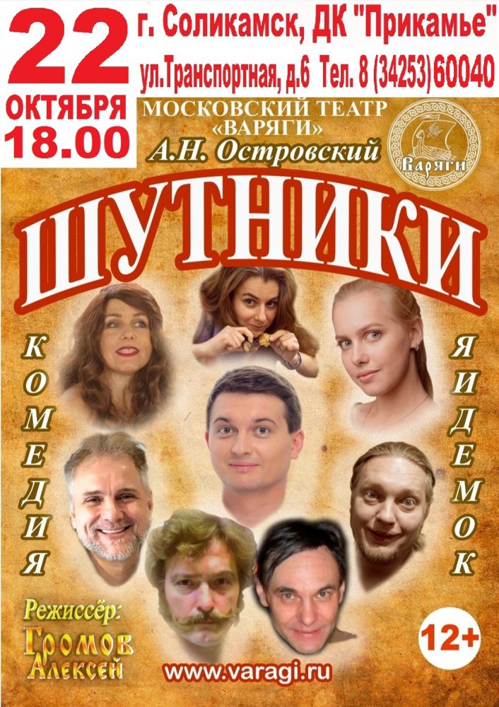 22 октября в 18:00 Московский театр «Варяги» представит комедию «ШУТНИКИ».