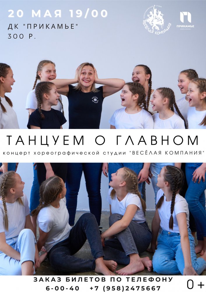 20 мая 2022 в ДК Прикамье пройдет концерт хореографической студии «Веселая компания» с программой «Танцуем о главном».