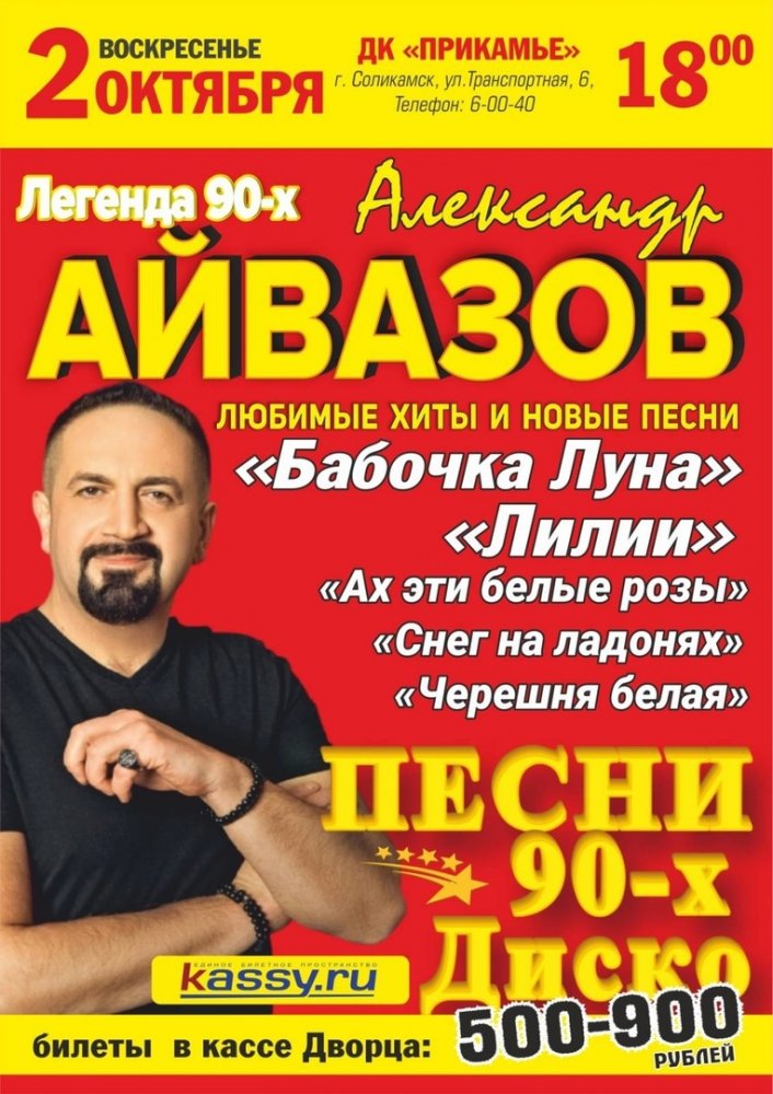 2 октября 2022 в ДК Прикамье пройдет концерт Александра Айвазова.