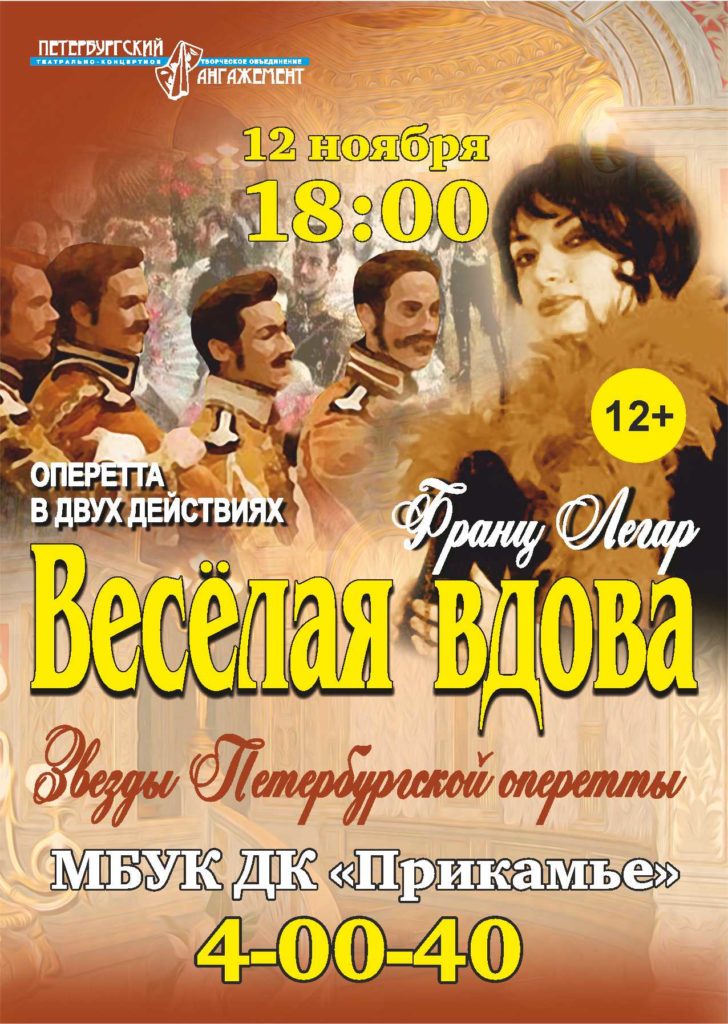 12 ноября в 18.00 в ДК Прикамье пройдет оперетта в двух действиях «Весёлая вдова».