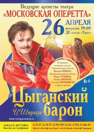 26 апреля в 19.00 в ДК завода Урал ведущие артисты театра "Московская оперетта" представят спектакль "Цыганский барон".