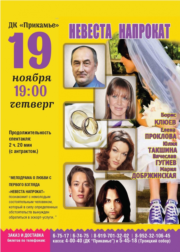 19 ноября в 19.00 в ДК Прикамье пройдет спектакль «Невеста напрокат».