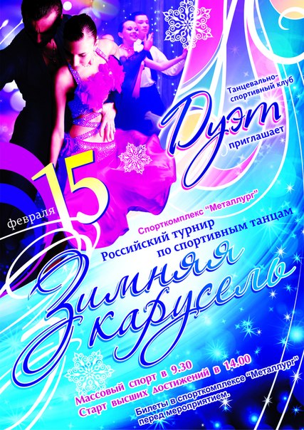 15 февраля в Спорткомплексе Металлург пройдет российский турнир по спортивным танцам «Зимняя карусель — 2015».