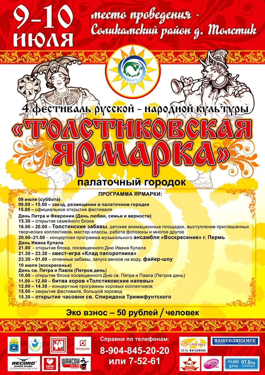 9-10 июля 2016 года в д.Толстик Соликамского района пройдет 4 фестиваль русской-народной культуры «Толстиковская ярмарка».