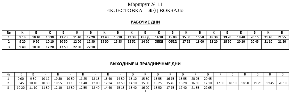 Расписание автобуса маршрута №11: Клестовка — Железнодорожный Вокзал