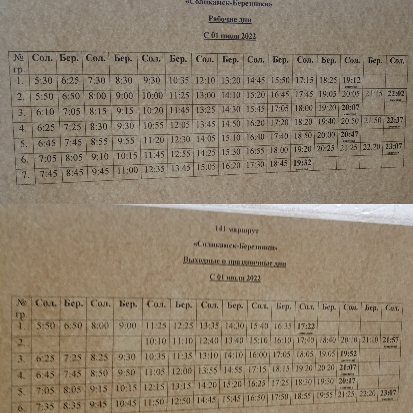 Расписание автобуса маршрута №141: Соликамск — Березники