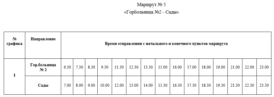 Расписание автобуса маршрута №5: Горбольница №2-Сады